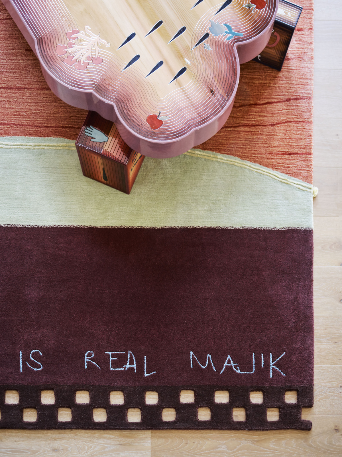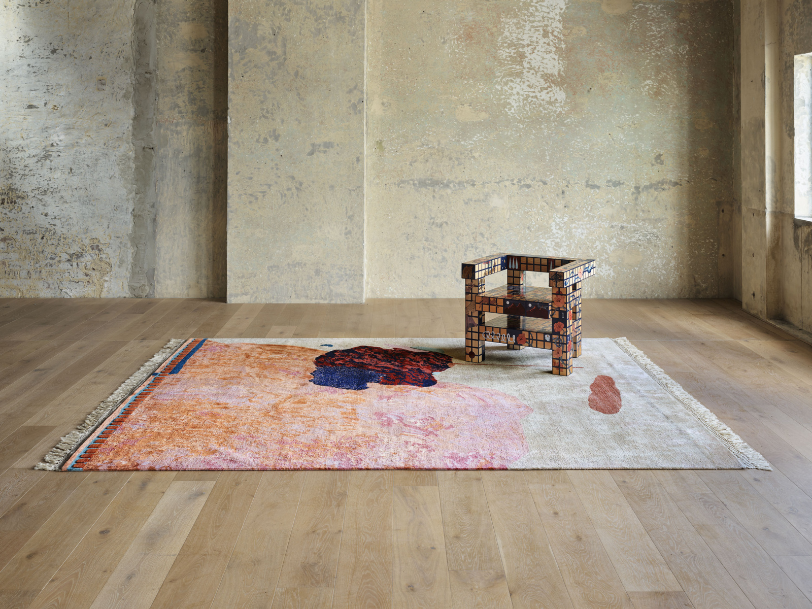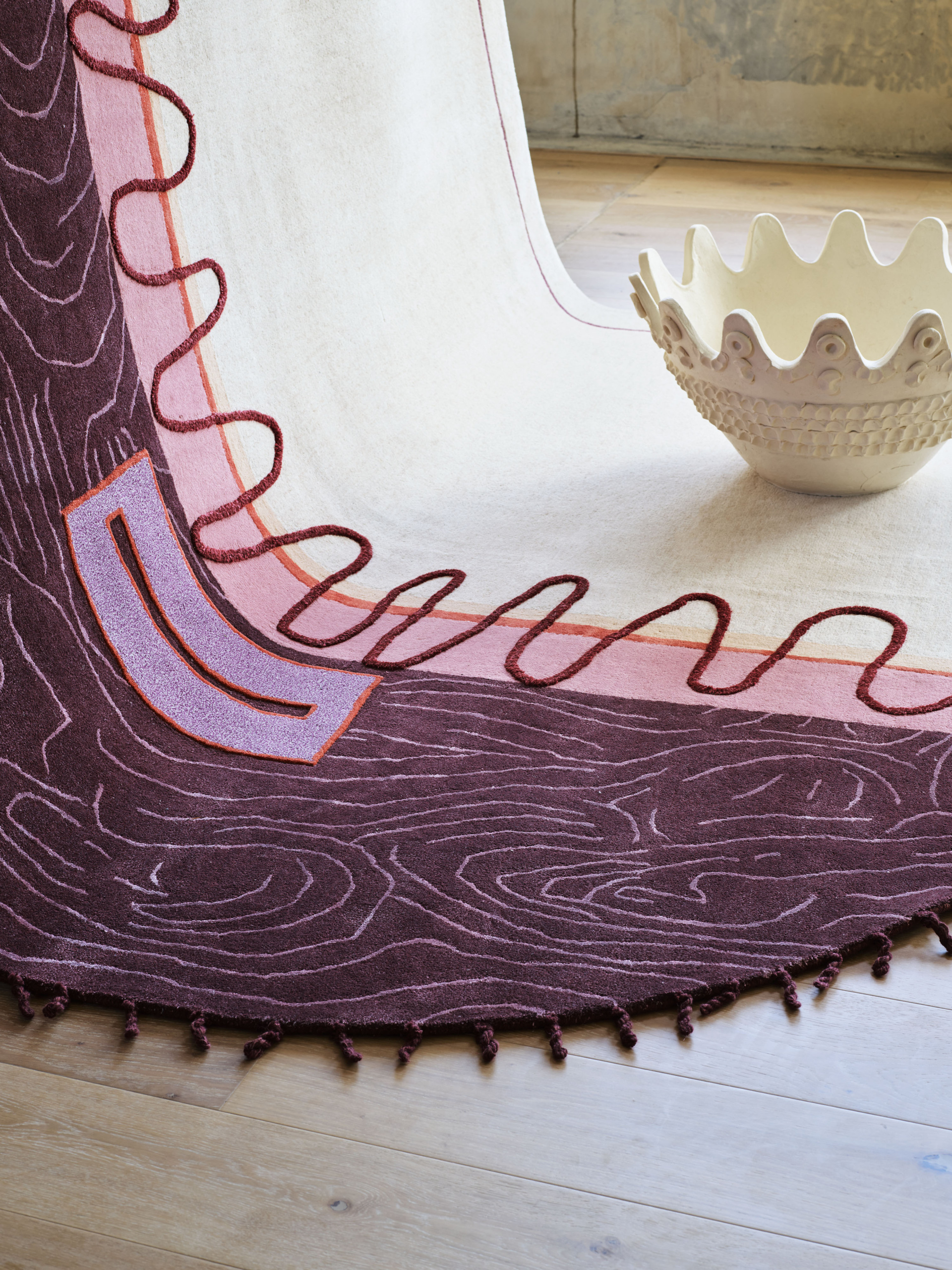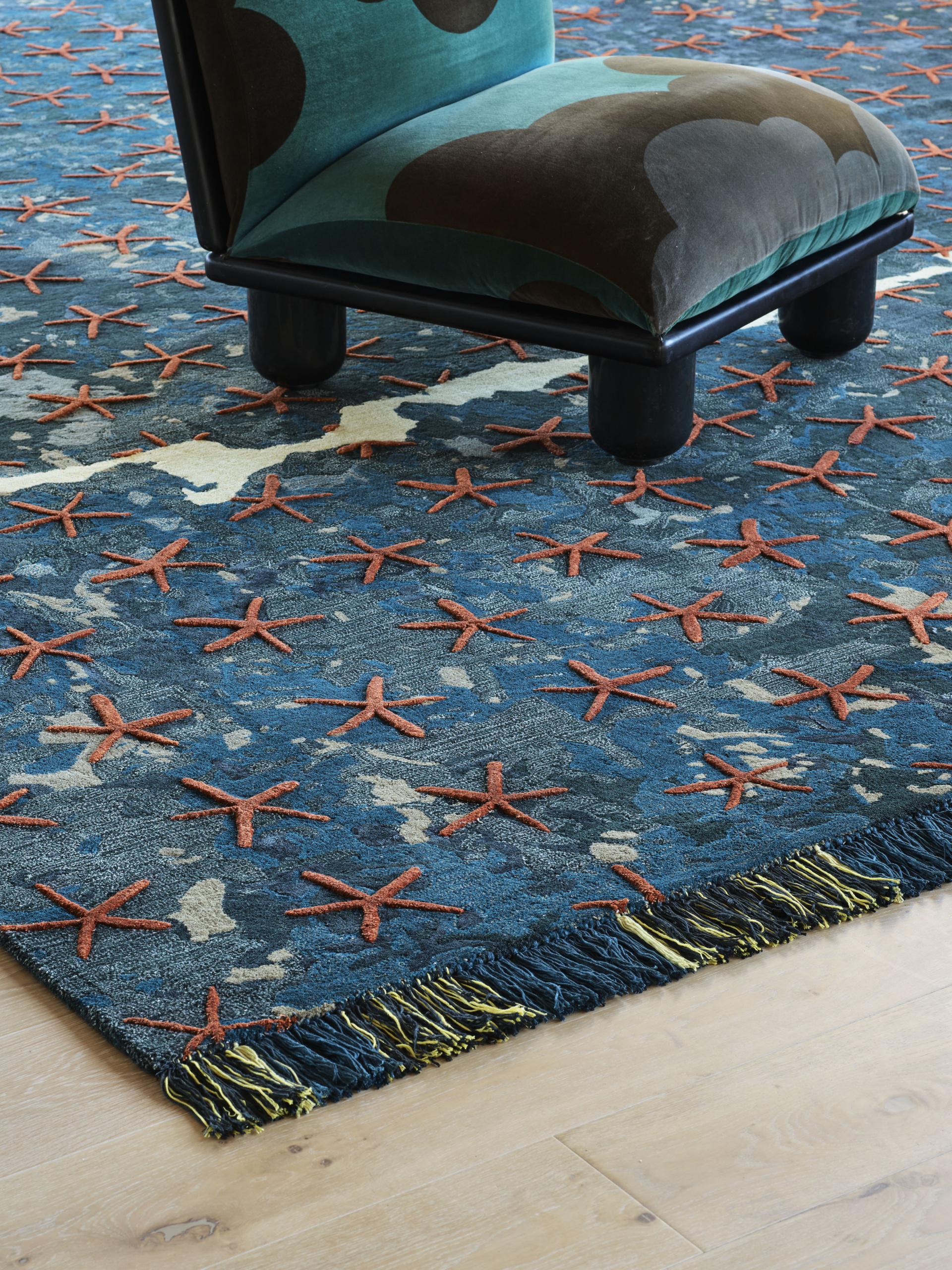 Hand-tufted in New Zealand wool and artsilk