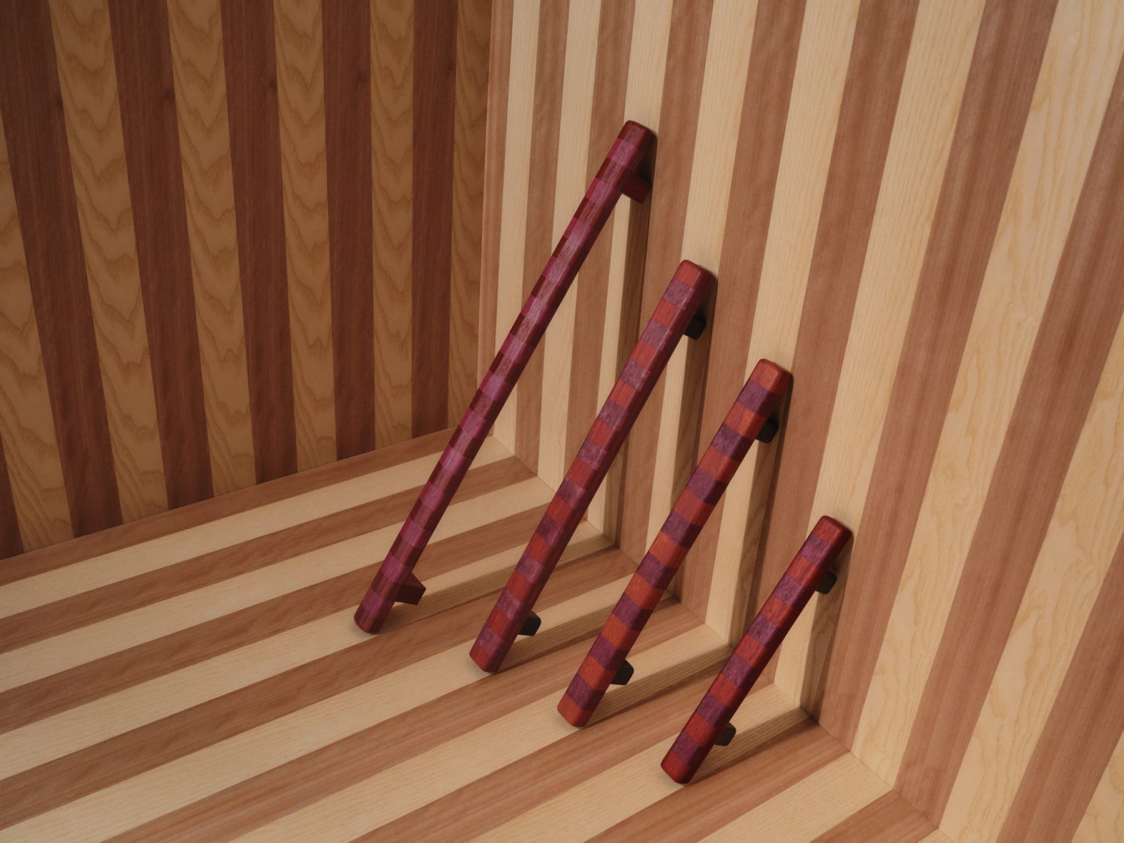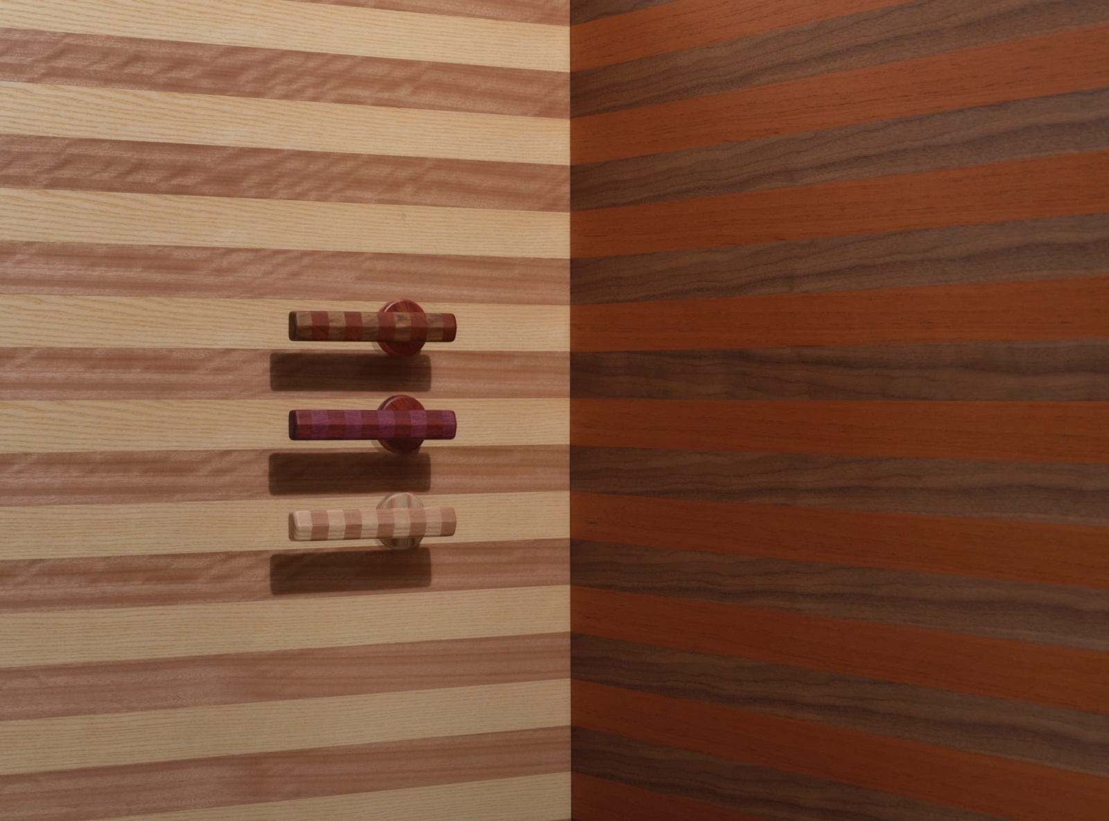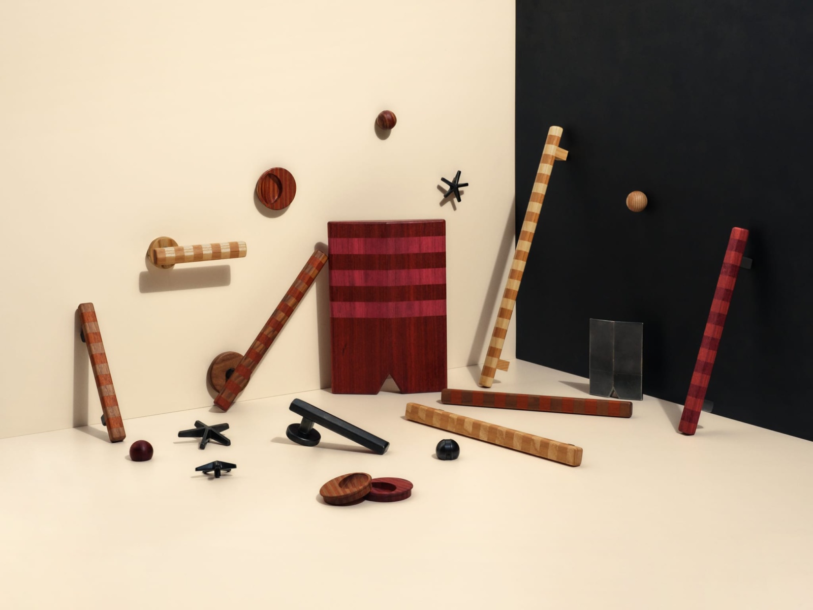 This spirited ensemble of door levers and pulls, plus joinery accessories is superbly crafted from FSC-certified timber that spans the globe. Featuring energetic stripes in contrasting natural tones, the banded motif makes for bold statements in every room. Complemented by a niche range cast in bronze, all pieces can be mixed and matched.