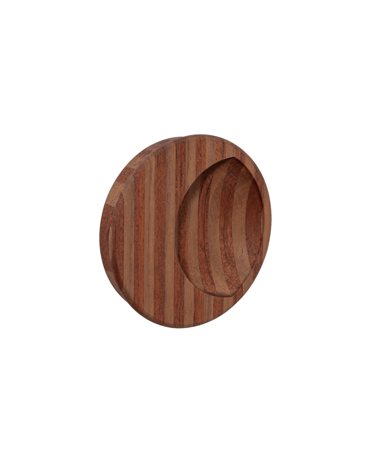 Set within a circular fixture, this sliding door pull is inset with a crescent moon, enabling fingers to snugly grasp its internal concave edge. Named after a streak of craziness, it alludes to the belief that the moon has the power to drive people to lunacy. Perfectly suited to pocket doors, it instantly animates any surface it adorns.