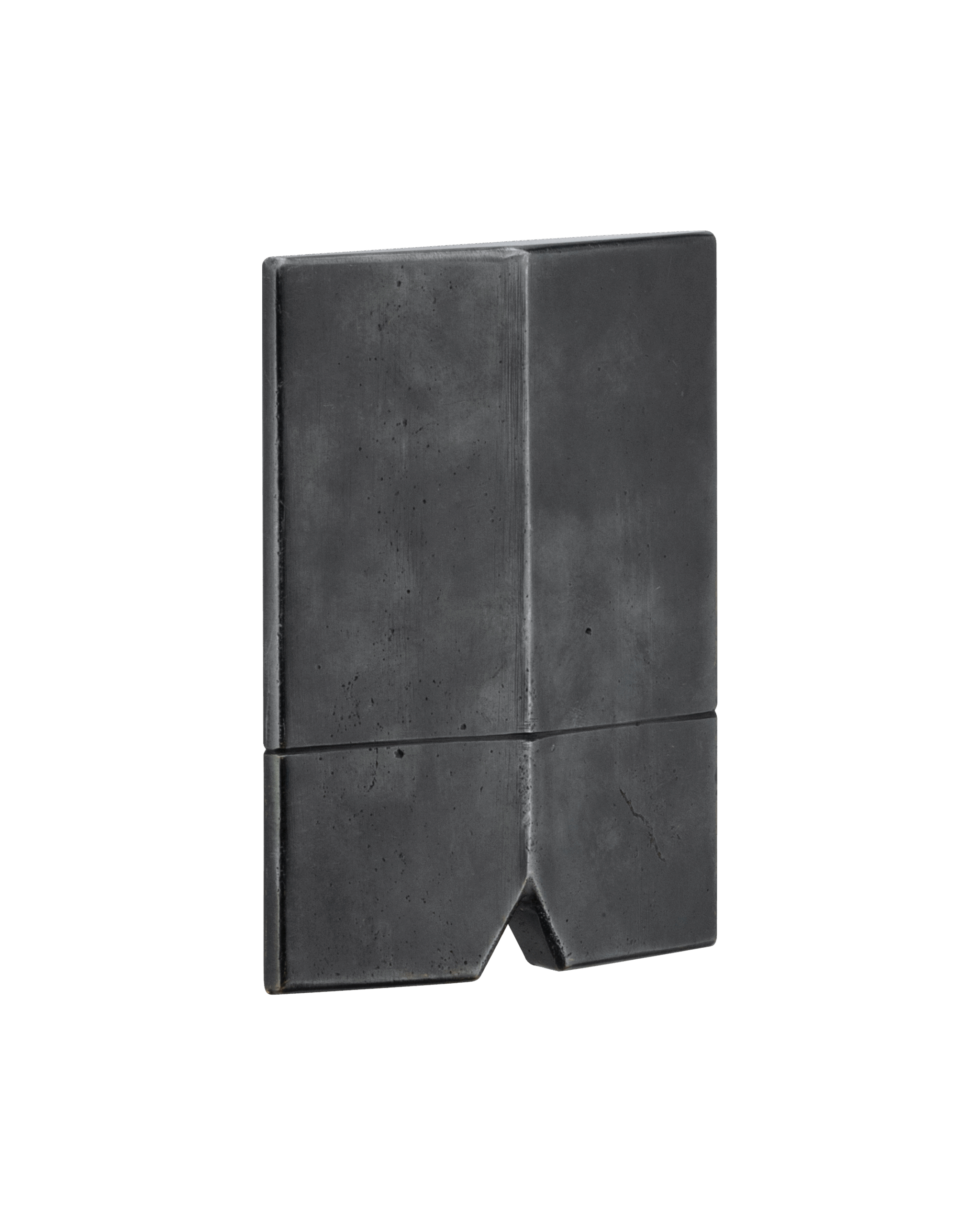 This character is a slender version of the Wide Guy door pull. Cast exclusively in bronze, it features a profile that rises to an angled peak with a triangular cut-out subtly relieving mass at its base. The hand sand-casting process leaves distinctive pitting and pour marks upon its surface. Its patinated finish instantly grants it an aged hue, with its touch points continuing to alchemise over time to rich golden glows. Suitable both indoors and out, it is available in two sizes (small, large).
