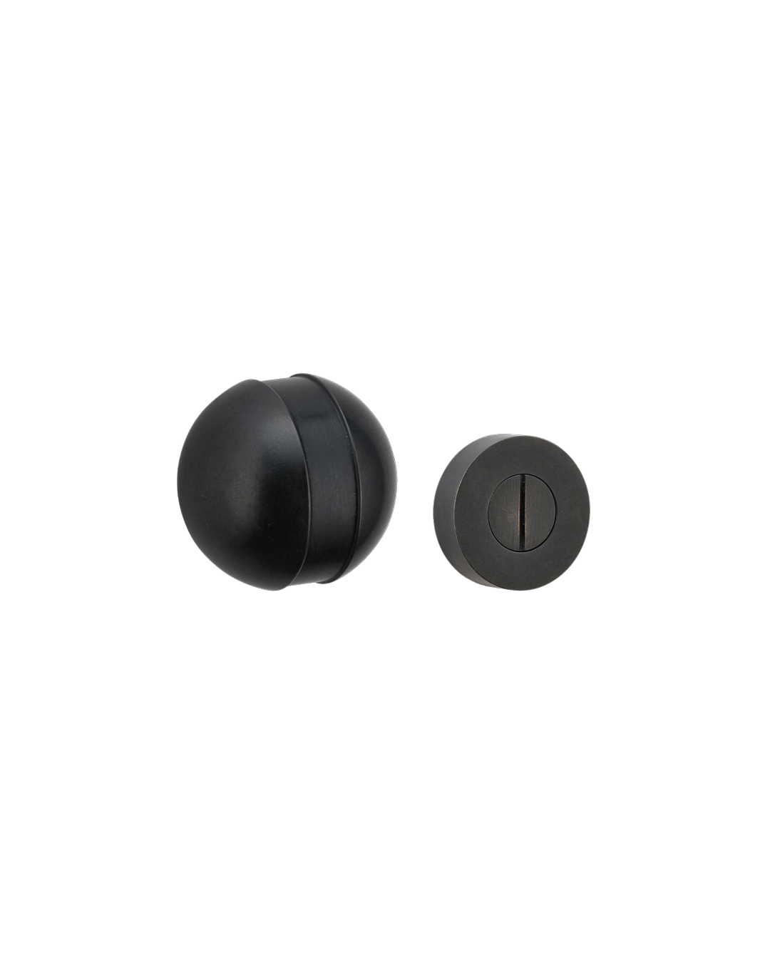 Usually a feature designed to discreetly blend into a door surface, this spherical internal locking device exudes a whimsical strength, like the dot to a door handle’s exclamation mark that invites engagement.